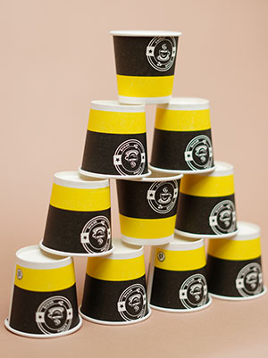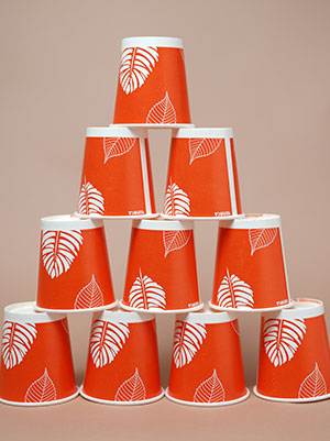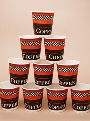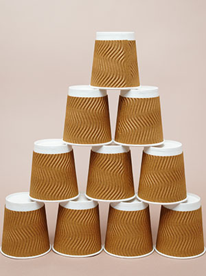 Hot and cold cups, available in various sizes (130 ml to 300 ml) and designs (single-walled, ripple)